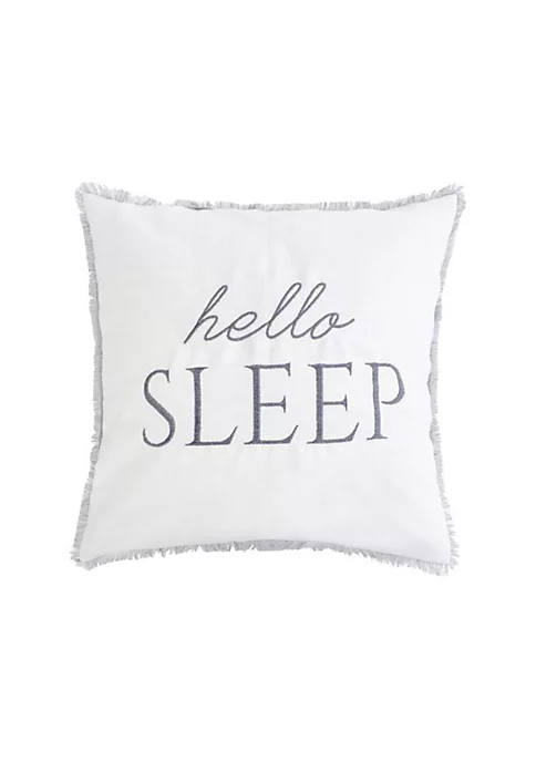 LEVTEX SANTANDER GREY COLLECTION: The Hello Sleep decorative pillow complements the Santander Grey bedding collection. Use it to accessorize your bed, or on your living room couch or favorite chair. This pillow features a beautifully embroidered hello sleep on a white ground with frayed trim all around.