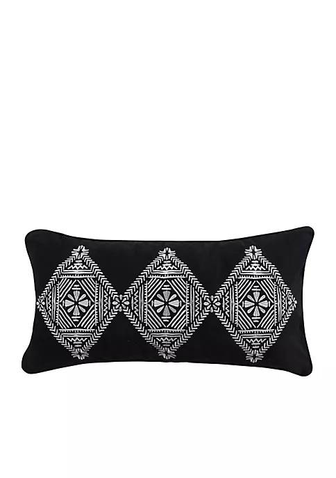 The Levtex Home Isaiah Triple Medallion Pillow will lend an elegant look to your home decor. With its black canvas ground and globally inspired white embroidered medallions, this 12-in. x 24-in. pillow is conveniently sold with a feather insert included. This item coordinates with the Levtex Home Isaiah Gray Collection.