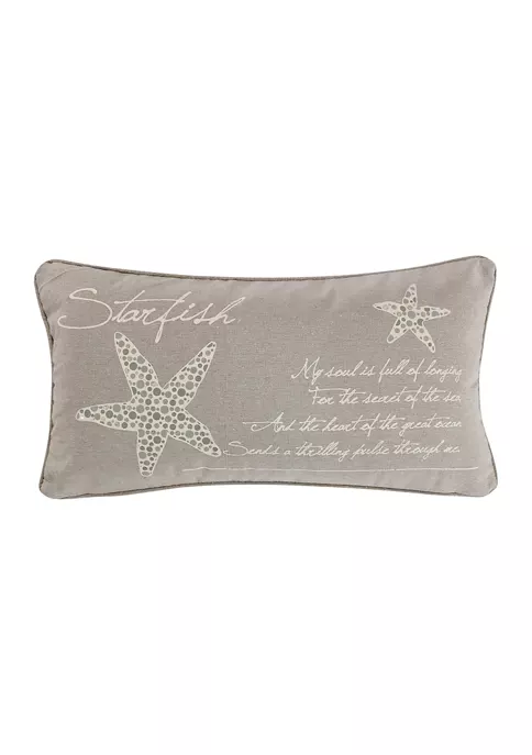 The Kailua Starfish Sccript Pillow is a great coastal addition for the bedroom. This breezy pillow is 12×24 and is feather-filled.