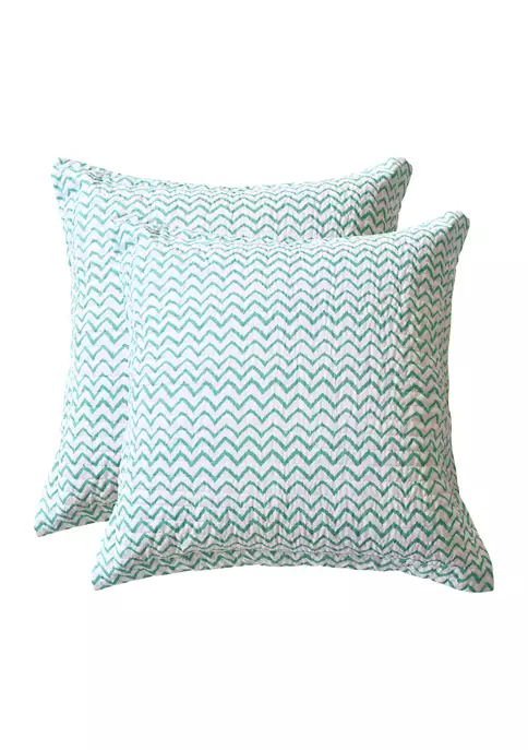 The Leora Euro Shams are the perfect complement to the homThreads Leora collection. This is the perfect accessory to add a layer of dimension and truly complete your bedroom. Sized at 26 inches by 26 inches, the euro shams feature a subtle chevron stripe in teal and white. Made from soft microfiber, the Leora Euro Shams are easy to care for. They come as a set of 2 without a filler.
