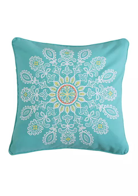 Lend style to your home with the Levtex Lilian Teal Medallion Pillow. This happy pillow features a large medallion printed in white with yellow and coral detailing on a bright teal backdrop.