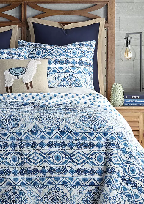Add a distinctive accent to your space with the Lillian Llama Pillow by Levtex Home featuring the lushly textured outline of a gorgeous llama in charming shades of natural brown, blue and white. Pre-washed and luxury oversized with an invisible zipper, this 18 in x 18 in pillow comes with a compressed duck feather insert and is made with a 53.5%/43.5%/3% Linen/Cotton/Filamentary blend. Coordinates with other bedding sets in the Levtex Home Lillian collection.