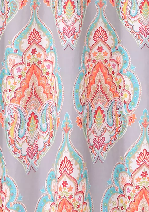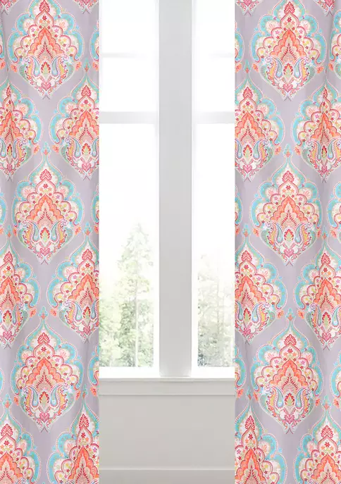 Highlight your window view with the impressive Levtex Home Marielle Drape Panel featuring a bold damask floral design in a variety of vibrant shades including teal, orange, purple, and gray. Machine washable and made with backed cotton, each gorgeous panel 55 in x 84 in fits a rod up to 3-inches in diameter and is fully lined.