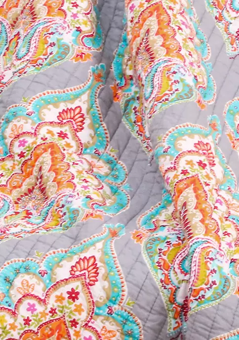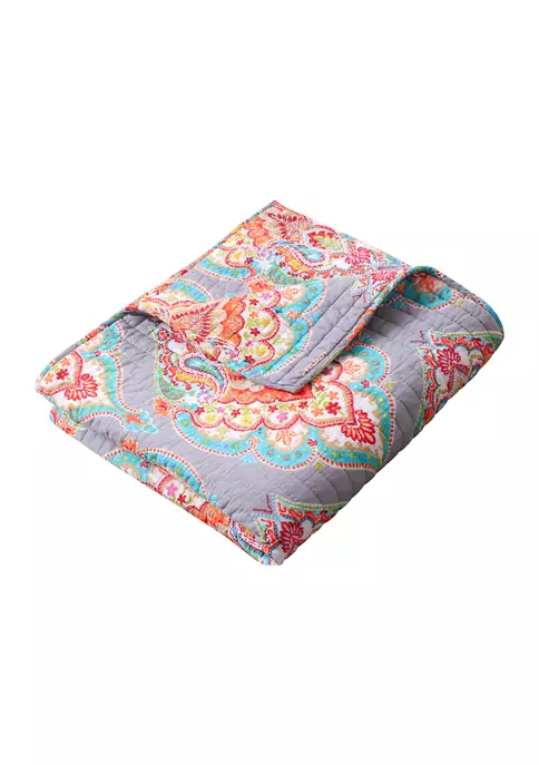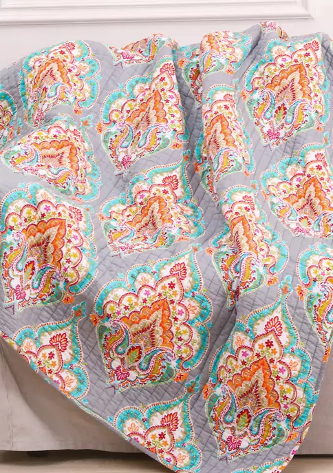 Drape yourself in comfort with the luxurious Marielle Quilted Throw by Levtex Home designed with vibrant damask floral pattern in a palette of vivid shades including teal, orange, purple, and grey. Pre-washed and stylishly oversized, this stunning reversible throw 50 in x 60 in is made with soft 100% quilted cotton.