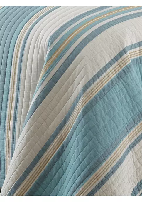 Bring the seaside into your home with the Naples Quilt Set, offering a stylish and fun addition to your home. This set boasts an attractive striped front, and artfully reverses to a sea horse print on a calming ground.