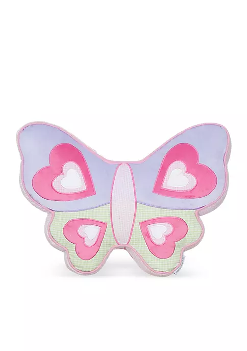 Bring joy into your child’s room with the Levtex Home Sabel Butterfly Pillow. Shaped like a butterfly, this soft pillow has plush purple upper wings, checkered light green lower wings, and a checkered light pink center. Wings are decorated with soft plush pink hearts and the back of the pillow is covered in a soft pink plush fabric to make it extra cozy.