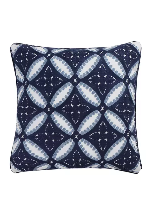 The Medallions Decorative Pillow matches perfectly with the homThreads Valentina bedding collection. This pillow is sized at 18 inches by 18 inches and features a crewel stitched medallion pattern in navy and light blue on off-white canvas. The color palette makes this a versatile accessory for your bed, couch, or favorite chair. The pillow comes pre-filled with a soft luxurious feather inner.