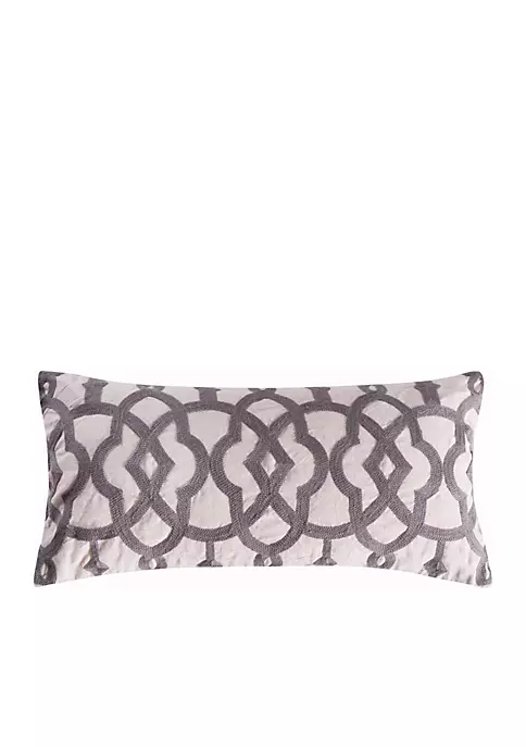 The Levtex Home Vasari stripe grey crewel stitch linen pillow will give your home a distinguished and sophisticated look. Featuring a thick grey trellis pattern on a natural linen blend ground, this 12-in. x 24-in. pillow is conveniently sold with a feather insert. This item coordinates with the Levtex Home Vasari Stripe Grey collection.