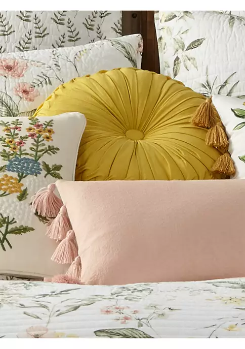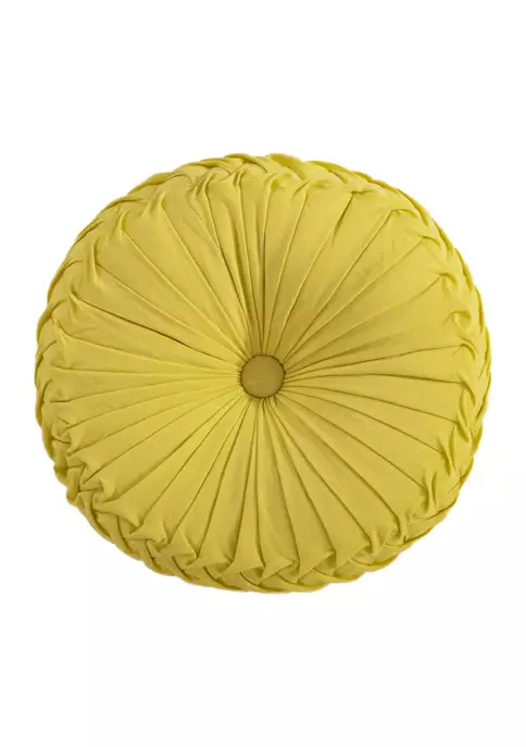 The Ochre Pleated Decorative Pillow matches perfectly with the Levtex Home Viviana bedding collection. This pillow is sized at 16i inches round and features a rich slub ochre fabric, beautifully pleated with interesting edging detail. The sophisticated color palette makes this a versatile accessory for your bed, couch, or favorite chair. The pillow comes pre-filled with a soft luxurious feather inner.