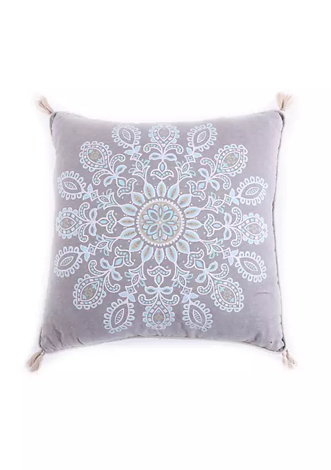 A mesmerizing medallion design adds refined determination to any living space when you prop up this tasseled pillow.